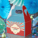A modern red, blue and yellow circus theme favour bag which you can personalize for your child. Include his/her name and birthday date. The other details a can also be customized.
