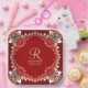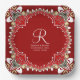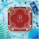 Red Bohemian Batik Monogram Wedding Paper Plate