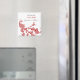 It was a bit smaller than expected, but I was too excited to check dimensions. The product itself send well printed though the grey text is a bit paint. Magnet worked perfectly on my fridge.