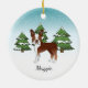 Red Boston Terrier In A Winter Forest & Name Ceramic Ornament
