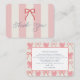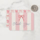 This coquette baby shower thank you note card features a red bow on a cream background with pink stripes. The reverse side features a cream background with a red bow pattern. Personalize it for your needs. You can find matching products at my store.