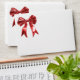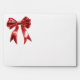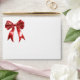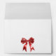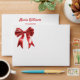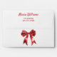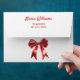 White background. Personalize and add a name and your return address. The name is written with a modern and trendy handlettered style script. Decorated with a red bow.