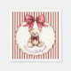 Celebrate the upcoming arrival of your little one with these adorable teddy bear baby shower paper napkins! Featuring a charming watercolor illustration of a cuddly teddy bear adorned with a sweet red bow, these napkins are perfect for adding a touch of whimsy to your celebration. The playful "We Can Bearly Wait!" text and classic red and white stripe background create a delightful and festive atmosphere for any baby shower. These high-quality napkins are sure to impress your guests and make your special day even more memorable.
