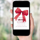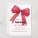 A white background, decorated with a large red bow. Personalize and add a name and party details.