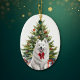Red Bow White Samoyed Dog Christmas Ceramic Ornament