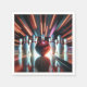 A bowling ball is in motion on a bowling alley lane with neon lighting