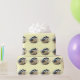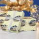 This wrapping paper is decorated with a repeating pattern of the Red-breasted Nuthatch who looks like he is taking charge! He is a very small bird with a rust coloured breast, blue and grey back and a black eye stripe on his white face. His head and beak are very large in proportion to his body.