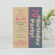 A clean and bold birthday invitation that features a new decade reached–40, 50, 60, 70, etc. The words “Happy Birthday” run vertically along the right side of the card for a fun and modern feel. You can customize the age next to the announcement. Choose from four different colour schemes: blue & orange, black & white, black & red, or the vintage brown, grey, and red.