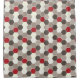 Honeycomb pattern shower curtain in shades of grey, white, red, and brown.
