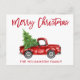 Brush Script Watercolor Vintage Red Truck with Christmas Tree - Merry Christmas Postcard