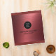 Simple red brushed metal with red glitter on the top and bottom and a black logo sign