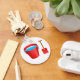 Illustration of a bright red colored beach bucket filled with water and a matching spade for the summer holidays. Easily customize and choose your own background color. Image available on various gifts and products.