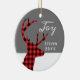 If you're holiday decorations have the farmhouse Christmas style, check out this Red Buffalo Check Deer Personalized Year Mens Ceramic Ornament. It is designed with a customizable dark grey background and red and black buffalo plaid deer head with antlers silhouette. The text is "joy" in modern calligraphy script lettering. Name and custom year is in white minimal lettering.