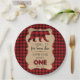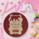 Red Buffalo Plaid Birthday ONE Custom Paper Plate