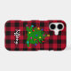 coque iphone : Rustique Noël mode design de couverture mobile avec sapin de Noël, nom personnalisé sur motif plaid de buffle rouge et noir.