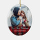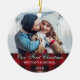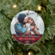 Elegant Script, Red Buffalo Plaid Our First Christmas Couple Photo Ornament
