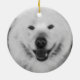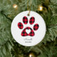 Red Buffalo Plaid Paw Print White Heart Ceramic Ornament