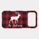 Protect your iPhone 17 Pro Max in rustic style with this red buffalo plaid case featuring a charming reindeer and customizable family name. Perfect for holiday gifting or adding a cozy farmhouse touch to your device. Click 'Personalize' to add your name and create your custom case.