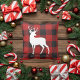 Red Buffalo Plaid & White Deer Outdoor Pillow