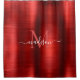 Red Burgundy Maroon Monogram Feminine Script Glam Brushed Metal Stainless Steel Shower Curtain