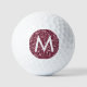 Burgundy Maroon Red Faux Glitter Design on Custom-Printed Golf Balls with a Modern Monogram Initial, perfect gift for the ladies and girls golf lovers.