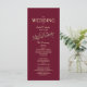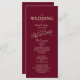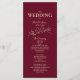 Elegant, romantic, chic, modern, minimalist, simple gold and red burgundy wedding program with unique hand drawn couple love birds and trendy calligraphy script.