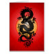 This flowing black Chinese dragon design is highlighted to give it a light shine on the surface. The tribal dragon snakes around from the head down to the curled tail. Four sharp claws reach out from the body creating an aggressive look. A circular, stylized sun appears just behind the serpent with a bright red star burst shining in all directions. This stylish design is a beautiful take on the traditional Chinese dragon.