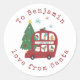 Red Bus Tree Child Name Love Santa Christmas Clas Classic Round Sticker