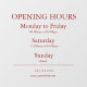 Make your business hours clear and stylish with this customizable Window Cling! Perfect for storefront doors and windows, this reusable cling displays your opening hours with a clean, professional design that catches the eye. Easy to apply and remove without residue — ideal for shops, cafes, salons, and offices.