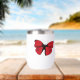 Red Butterfly Drawing , custom background color. Personalized mug, easy to add you name.