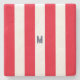 Red Cabana Stripe & Personalized Navy Monogram Stone Coaster