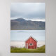 Travel photo of a traditional norwegian red cabin at the beach in Ramberg, Lofoten Islands. Photo © Sebastian Worm