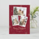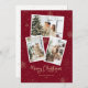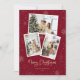 Photo personnalisée rouge et or Joyeuse carte de Noël avec un collage photo, une police de caractères élégante et un arrière - plan rouge orné de chutes de neige et de flocons de neige. Personnalisez facilement cette carte de vacances moderne avec vos photos et texte.
