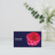 A business card with a Red Camelia. Business name etc on the front with other details on the reverse with the same motif and style.
