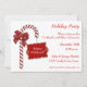 A festive holiday party invitation with red and white candy cane and faux red ribbon and bow. Easy to customize with your party details. Invitations come with envelopes and your choice of paper.
