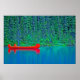 Red Canoes on Green Water Poster