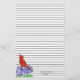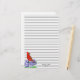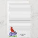 A lined stationery decorated with a bright red cardinal bird in a patch of vibrant purple wood violets drawn with ink and painted with watercolor. Inspired by the state bird and state flower of Illinois. You can edit or remove the text to fit your needs.