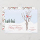 A flat winter holiday card featuring a red cardinal perched on a snowy tree branch in a serene snowy setting with evergreen trees in the background. Against a background of mounds of snow is a greeting of "Happy Holidays" in a classic script typography with an traditional vintage flourish and "Warmest Wishes" in a block-style red typeface. Personalize the closing and your individual or family name. The reverse side is a pattern of cardinals on snowy tree branches. Use the template fields provided by clicking the Personalize button.