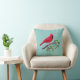 Red Cardinal Bird on Teal Throw Pillow