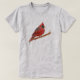 A t-shirt decorated with a red cardinal bird painted in watercolor with black pen and ink. Nice shirt for bird lovers and watchers!