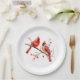 Red Cardinal Birds on Holly Tree Branch Paper Plate