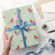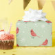 Red Cardinal Birds & White Snowflakes On Green Wrapping Paper