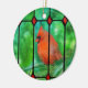 In beautiful holiday colours, this ornament depicts a glorious, red cardinal sitting outside a stained-glass window.