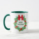 This pretty holiday mug features a green wreath tied with a bright red bow. Around the wreath are scattered little red birds. At the centre is the matching green text which says "Merry Christmas", but you may easily change it to anything you'd like. The other side has the same image with the text "Happy New Year". A third text field between the two images can be used for your name. Be sure to see the matching products in our store.