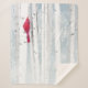 Red Cardinal in beautiful snowy Birch Tree Forest Sherpa Blanket