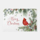 Lovely Christmas greenery including pine branches and pine cones and vivid red cardinal. With the words Merry Christmas - there is also a version with Happy Holidays.