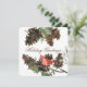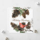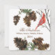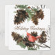 A beautiful Christmas holiday card to send to all your friends and family members, features a square rounded corner card with a white background that you can change to the colour of your choice, pine cones, tree branches, a red cardinal, and customizable text that reads Holiday Greetings on the front, the same customizable white background, pine cones, red cardinal, and branches with a customizable area to add your family name, first names, and current year on back.