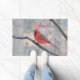 Bright red cardinal featured on durable welcome mat, makes a great first impression!