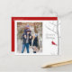 Simple classic red cardinal sitting on a simple winter birch tree in the quiet solitude of a winter bird in a woodland forest. A beautiful and minimalistic design that depicts the simplicity of winter. This design features Christmas holiday red cardinal elegant, family photo collage 1 One, family picture watercolor nature, photo Christmas cards, season's greetings typography text, woodland birch tree winter design, trendy stylish calligraphy script font, Christmas holiday seasonal forest bird, modern handwritten drawn style, winter scene tree branches twigs, a Christmas holiday budget postcard