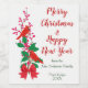 Bright red cardinals perch on a holly sprig on the left side of this pretty Holiday wine label. The holly is laden with red berries, and tied at the bottom with a red bow. At the left is red script that says "Merry Christmas & Happy New Year". Below that are additional text fields in green for you to customize; in fact, all of the text may be easily customized, including the greeting. Festive and cheerful! Be sure to see the matching products in our store.